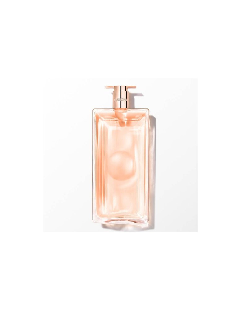 Damska woda toaletowa Idôle zamknięta jest w smukłym, metaliczno-złotym flakonie przypominającym otwarte okno.