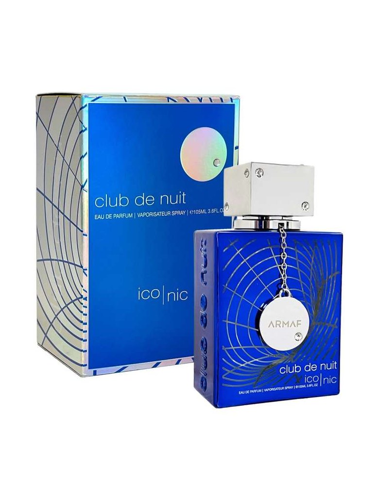 Club de Nuit Blue Iconic marki Armaf to perfumy dla mężczyzn. Są to nowe perfumy, Club de Nuit Blue Iconic został wydany w 2022 roku. Nutami głowy są Grejpfrut, Mięta, Różowy pieprz, Cytryna i Kolendra; nutami serca są Imbir, Gałka muszkatołowa, Melon i Jaśmin; nutami bazy są Kadzidło, Bursztyn, Cedr, Drzewo sandałowe, Nuty drzewne, Paczula i Labdanum.